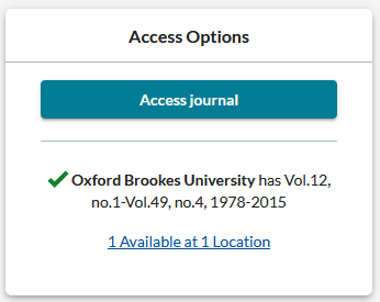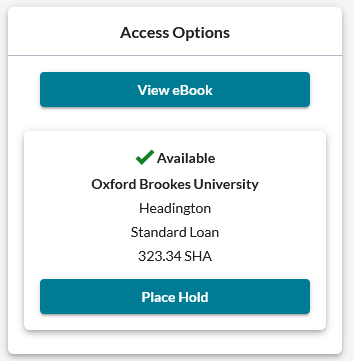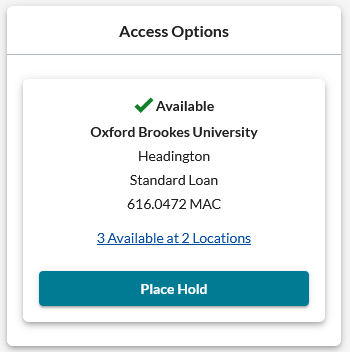 The Access Options panel is found on the item details pages. This panel will select the best access options for this item and show them to you in one place.
